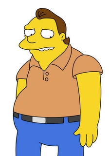 Bernard "Barney" Arnold Gumble (Barney Gómez en Hispanoamérica) (nacido el 20 de abril de 1962) es un personaje de la serie animada Los Simpson. Su voz original se la da Dan Castellaneta, mientras que en España fue doblado por Luis Marín en las 23 primeras temporadas. En Hispanoamérica fue doblado hasta la decimoquinta temporada por Bardo Miranda, a quien sustituye Gerardo Vásquez, y Dufie DeeJay. Información general[]Barney Gumble es la satirización del típico alcohólico que pasa casi todo el día bebiendo. Su voz es bastante grotesca eructando de vez en cuando producto de su alcoholismo. Con respecto a su hogar aparecen tres: El primero es La Taberna de Moe que realmente no es su hogar sino que a veces se ha quedado dormido producto de la borrachera, luego se ve un apartamento sucio y muy poco amueblado, y por último, un apartamento con una barra como la de las estaciones de bomberos, que llega directamente al bar de Moe. Según el episodio 22 Short Films About Springfield, Barney debe a la taberna de Moe 15.000.000.000 de dólares Según Matt Groening el nombre "Barney Gumble" es una parodia del nombre "Barney Rubble" (en español Pablo Mármol) el amigo de Pedro Picapiedra de la serie Los Picapiedra. Barney es mitad polaco y mitad noruego. Su padre, Arnie Gumble murió en 1979 en un acc![]() Distintas personalidades[]Barney al parecer tiene mucha predisposición para ayudar a los demás, como por ejemplo en el episodio $pringfield, Or How I Learned to Stop Worrying and Love Legalized Gambling cuando Marge Simpson estaba completamente abstraída jugando en una máquina Maggie se le escapa por todo el Casino y Barney la encuentra justo antes que la atacara un tigre de circo y se la devuelve a Marge y le dice "Marge,![]() Barney talentoso[]Por otro lado Barney es todo una incógnita, de primera impresión uno podría pensar que no tiene ningún talento especial, pero en el episodio Homer's Barbershop Quartet queda totalmente refutado, en este episodio Homer cuenta a Bart y Lisa la historia de su grupo llamado The Be Sharps ("Los Borbotones") en el que uno de los integrantes era Barney, lo integran al grupo luego de que el Jefe Clancy Wiggum (Jefe Górgory) fuera expulsado del grupo, lo descubren en la taberna mientras cantaba en el suelo del baño buscando "su mondadientes". Más aún esto se reafirma en el episodio A Star is Burns cuando presenta un corto que trata sobre su ebriedad, el jurado queda impresionado porque era realmente una obra de arte, en el episodio cuando Homer era artista este le paga a Moe con un autógrafo, Barney le dice a Moe que si le puede pagar con un dibujo, pero el se niega, cuando muestran el dibujo se observa que era la obra en puntillismo Domingo en la Grande Jatte de Seurat, pero firmado por el. Ebriedad[]El origen de su alcoholismo es bastante difuso. En las primeras temporadas no se hablaba del tema, luego en un episodio Homer le dice a Barney que él es su mejor amigo, y en ese momento aparece una imagen del pasado (Flashback) en que se los ve a ambos adolescentes a punto de ingresar a Harvard. Mientras compartían la habitación Homer le da una cerveza para que Barney pruebe, en un comienzo no quería pero luego accedió "Bueno pero solo un trago", cuando la probó pasaron uno segundos y se bebió toda la lata y a partir de ahí comenzó la enfermedad de Barney. En otro episodio se muestra que el padre de Barney también era alcohólico, tras su muerte Barney se echó a la bebida. Una de sus muchas meteduras de pata estando ebrio fue el confundir una reunión de las Chicas Exploradoras con otra de Alcohólicos Anónimos. Barney bebe casi exclusivamente cerveza Duff, hasta tal punto que no sabe qué es el agua, como quedó demostrado cuando se enroló en un submarino nuclear, ante una fuga diminuta se refirió al agua como "un líquido transparente no alcohólico". Tampoco le gusta el vino, cuando se presentó para ser astronauta y le prohibieron la cerveza pensó que se volvería loco a base de beber vino. Barney intentó en una ocasión superar su alcoholismo empujado por las burlas de sus compañeros, y decidió así realizar un curso de piloto de helicóptero, sin embargo Moe consiguió que se enviciara a un batido de café. En el capítulo "The Joy of Sect" se comprueba que Moe utiliza el vudú para provocar en Barney la necesidad de beber. En el capítulo en que Smithers es despedido de la central nuclear por Mr. Burns, El propio Smithers va a pedir trabajo a la taberna de Moe, el trabajo consiste en distraer a Barney mientras el repartidor de cerveza Duff repone, Homer convence a Smithers de que él sirve para mucho más, Barney aprovecha y se escucha al repartidor de fondo "si, firme aquí... Oh no! otra vez tú, disparale, disparale!!" Sobriedad[]La primera vez que fue visto libre de alcohol fue en el episodio Homer en el espacio profundo, donde preparándose para ser astronauta es privado de bebida recuperando así el equilibrio y la dicción pudiendo hacer series de saltos mortales invertidos mientras recitaba un complicado trabalenguas. En "Days of Wine and D'oh'ses" Moe le regala un curso para ser piloto de helicóptero pensando que no lo iba a tomar dada su enfermedad. Barney entra a los alcohólicos anónimos y deja atrás la cerveza, gracias a que aprendió a pilotar helicópteros pudo junto a Homer salvar a Bart y Lisa de un incendio forestal. Luego finalizando la temporada 15 vuelve a su estado original de alcohólico, sin embargo en la temporada 16 vuelve a los controles de su helicóptero totalmente sobrio, pero luego vuelve a la cerveza. La última vez que se le vio sobrio fue en Los Simpson: La Película , donde es destruido el barril de café y todos enloquecen. Las constantes idas y venidas de su enfermedad muestran claramente su voluntad por superarse que sin duda se sabrá el final de esto con la finalización misma de la serie. Barney tiene un patrocinador con forma de conejo blanco y si Barney no bebe el morirá. 