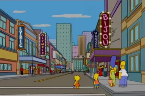 El Centro de Shelbyville esta conformado por negocios, teatros, tiendas, etc. Los Simpson acuden alli para ir de compras y al teatro, solo para darse cuenta que se burlan cruelmente de Springfield.