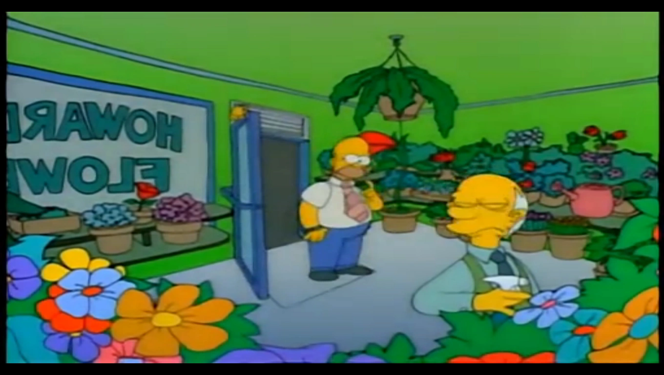 ya que este no le habla mucho y no la besa al despedirse va a la floristería a comprarle flores a Marge para reconciliarse con ella.