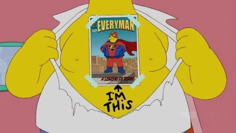 Homer the Whopper (El Súper-Homer en España y Homero el grande en Hispanoamérica) es el primer episodio de la temporada 21 de Los Simpson. Sinopsis[]Todo comienza cuando Bart y Milhouse, planean volver loco a Jeff Albertson, entran en la tienda, y comienzan a hacerle preguntas sobre Spider-Man para molestarlo. Milhouse lee una historieta hecha por él y nota que es perfecta. La historieta trata de un robo al banco y un héroe gordo llamado Everyman (El Hombre Todo) que es capaz de copiar los poderes de todos los superhéroes con tocar alguna historieta de ellos. El Hombre de las historietas le quita la historieta de Everyman. Bart lo convence de publicarla. La historieta se vuelve muy popular y un estudio de películas "One-Week Wonder Studios" busca una nueva película. En ese momento, entra un niño llamado Jonah quien dice que Everyman es el mejor héroe del mundo, entonces su padre, dice que haran la pelicula, pero entonces una señora del estudio dice que Ginormous Studios ya habia comprado la pelicula; ese estudio habla con su creador para preguntarle de hacer una película, él contesta que buscará al protagonista. Ellos no aceptan pero él los molesta hasta que ceden. Tres personas son rechazadas y el protagonista recae en Homer quien entra en la tienda y hace que Jeff Alberson lo vea como Everyman. En la cena de los Simpson, Homer, dice que todos deben contar una gran historia. Lisa, cuenta que aprobó todos los examenes nacionales de matemáticas. Marge postuló siendo presidenta del club de jardinería pero perdió, Bart dice que sus tiroides no bombeaban bien y Homer dice que será protagonista de la película de Everyman. En un rodaje engulle todo lo que encuentra y se ve como su camisa se rompe mientras recupera su antiguo aspecto. Los productores deciden cancelar la película por el peso de Homer. Cuando tiene sexo con Marge, un boton le salta desmayándola. Despierta en el suelo unas horas después, Homer admite haber perdido su peso perfecto. Al otro día, entra en el Kwik-e Mart para pedirle a Apu que le de algo que lo haga vomitar. Apu le da una leche del 61 y él vomita hasta volver a ser delgado. Luego se lo ve en la película corriendo de un villano que lo sigue pero en cada minuto aparece gordo y delgado. Todos detestan la película. Al salir encuentra a Lyle quien le dice que porque él lo haya dejado no debe dejar de ser delgado y promete volver con él. Mientras, los productores le dicen a Jeff Albertson que la película es pésima, pero si él menciona que la película es buena, lo dejarán dirigir Everyman 2. Jeff Albertson hace correr la voz de que la película es "La peor película de todas". El capítulo termina con Everyman diciendo -I'm so cold- o tengo tanto frío. Producción[]Seth Rogen y Evan Goldberg preguntaron a los productores de Los Simpson si podían escribir algún episodio. Los invitaron al cuarto de escritores, donde ofrecieron varias ideas de episodios. Uno de ellos fue aceptado, por lo que comenzaron a escribir con la ayuda de los escritores regulares de la serie. La idea ocurrió en agosto de 2008, y la producción sobre el episodio comenzó después esto. Rogen más tarde dijo "nos sentamos para un leído y tres horas más tarde estaba en un estudio grabando con Homer Simpson, ese fue el mejor día de mi vida". |