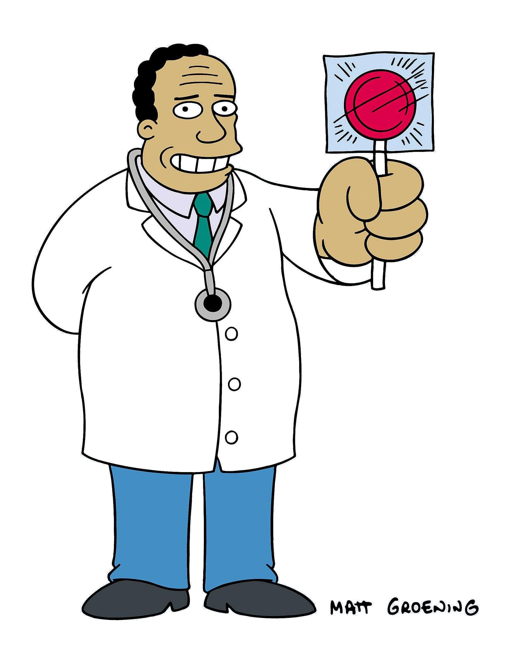 El Dr. Julius M. Hibbert (Conocido como Julio Hibbert en Hispanoamérica) es un personaje recurrente de la serie animada Los Simpson, su voz original se la da Harry Shearer y apareció por primera vez en "Bart the Daredevil". El Dr. Hibbert es el más competente y destacado doctor de todo Springfield, aunque usualmente no demuestra esfuerzo ni empeño en su trabajo. Una de sus características principales es la de reirse en las situaciones menos oportunas. En Hispanoamérica estaba doblado originalmente por Juan Felipe Preciado, en algunos episodios fue doblado Mario Sauret, y actualmente esta doblado por Gerardo Vázquez en la versión hispanoamericana. Papel en Los Simpson[] Sin su bata de médico. Personalidad El Dr. Hibbert es (usualmente) el médico de cabecera de la familia Simpson, un genio (con un IQ de 155), un miembro de Mensa, estudiante graduado de la Universidad de Medicina Johns Hopkins, y un miembro de la empresa en el hospital Johns Hopkins. Hibbert es notablemente menos disfuncional comparado con otros personajes de la serie, aunque tiene la tendencia de reírse en los momentos menos inapropiados para los pacientes,pero en un capítulo menciona que si no aprende a reirse asi ya estaria muerto. Él Menciona en "Make Room for Lisa", que "Before I learned to chuckle mindlessly, I was headed to an early grave." (traducido como "Antes de que haya aprendido a reírme sin pensar, estuve a punto de tener una muerte temprana"). También suele dar dudosas soluciones a problemas médicos. Por ejemplo, cuando Maggie salvó a Homer de ahogarse, él lo atribuyó como uno de los comunes casos de la fuerza supernatural humana en niños cuyos padres están en un grave peligro. Asimismo, mencionó haber tenido una leve sorpresa cuando los riñones de Abraham Simpson estallaron. Hay sugerencias que demuestran que el Dr. Hibbert no ejerce la medicina legalmente, aunque en otros episodios suele contradecirse. Luego de que Marge conversara con él sobre evitar comprar una casa en malas condiciones, Hibbert, agradecido, sugiere regalarle prescripciones en el mercado negro. Cuando se da cuenta de que Marge tuvo inicialmente entusiasmo cuando tuvo tres hijos, Hibbert mencionó que la salud de un bebé costaría $60,000 en el mercado negro. También es mencionado en "Wild Barts Can't Be Broken" que no tiene una licencia de médico. A pesar de su semejanza de persona honesta y buena, hay evidencia de que sólo es un interesado. En "Homer's Triple Bypass", Hibbert le anuncia a Homer que su operación del corazón costaría $30,000. Cuando Homer escucha el precio, vuelve a tener un ataque al corazón. Seguido a esto, el doctor Hibbert menciona que el costo serían $40,000 en vez de $30,000. En "Bye Bye Nerdie", luego de que el empleo de Homer de cuidar bebés acabara con las lastimaduras en los mismos, Hibbert se queja y dice estar en una época de crisis en el Hospital. Es Republicano y se lo vió en el Cuartel de Republicanos de Springfield reuniéndose con el Sr. Burns y Rainier Wolfcastle. Hibbert es seguidamente visto en flashbacks (por ejemplo, en el nacimiento de Lisa, o en los accidentes de Bart como niño), y en cada aparición tiene un corte de pelo diferente (afro, dreadlocks, Mr. T-style Mohawk, etcétera) apropiados para cada período de tiempo. Hibbert trabaja en el Hospital General de Springfield. Familia[]El Dr. Hibbert es casado; él y su esposa Bernice tienen por lo menos tres hijos sin identificar, dos niños y una niña. Cuando es vista a la familia entera, parecen ser una parodia de The Cosby Show. Bernice es conocida como una alcohólica; esto sólo se ha visto en una ocasión (en "Homer vs. the Eighteenth Amendment" donde cae al piso junto con otros alcohólicos de Springfield, al escuchar que les quitarían la cerveza) Posible hermano perdido. Un dato importante es que Bleeding Gums Murphy y él son hermanos perdidos; Hibbert dijo que tenía un hermano jazzista mientras que Bleeding Gums Murphy mencionó tener un hermano que era doctor y que se reía en las situaciones más inoportunas. Ambas descripciones concuerdan obviamente. Hibbert tiene una apariencia muy similar al director del Orfanato de Shelbyville, quien menciona también querer encontrar a su hemano perdido al igual que Homer. Tiene un poodle llamado Rosa Barks (en alusión a Rosa Parks) que fue embarazada por Santa's Little Helper. Infelices con los hijos poodles, el doctor Hibbert los abandona con Los Simpson y ellos los reparten. Los dueños conocidos fueron Krusty, Snake y Willie. Personaje[]Los escritores Jay Kogen y Wallace Wolodarsky idearon originalmente que Hibbert fuera una mujer, llamada "Julia Hibbert", quien hubiera sido una parodia de la actríz Julia Sweeney (Hibbert fue el apellido de su marido). Cuando Fox movió a Los Simpson al prime time The Cosby Show, el equipo de escritores decidieron crear a Hibbert como una parodia del personaje de Bill Cosby "Dr. Cliff Huxtable". Hibbert viste swaters usualmente, una referencia a Huxtable. Es uno de los más inteligentes personajes y simpatico en un principio, luego se fue descubriendo su verdadera identidad a lo large de la serie. Comparación del Dr. Hibbert con el Dr. Nick[]Un análisis en Canadian Medical Association Journal comparó los sevicios de Hibbert con los del Dr. Nick Riviera, un charlatán personaje que se da de listo usado en Los Simpson como competencia del Dr. Hibbert. Mientras que Hibbert cuenta con su sentido del humor e inteligencia. Se concluyó que Riviera cumple un mejor papel para la psicología; Hibbert es un paternalista y malgastador psíquico, que cobra por escasos trabajos y siempre intenta evadir los problemas.