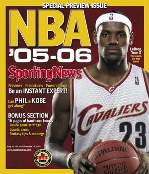 Lebron Raymond James en 2005, año en que se estrenó el episodio en el que sale. Traducción de la portada de la revista: Especial Deportes. Previstas, predicciones y ratings de poder. Se un experto al instante. Bonus. 16 Páginas. Estrategias. Vistas de exploración. Tips fantásticos y rankings.Elecciones expertas. Caballeros (Camisa).
