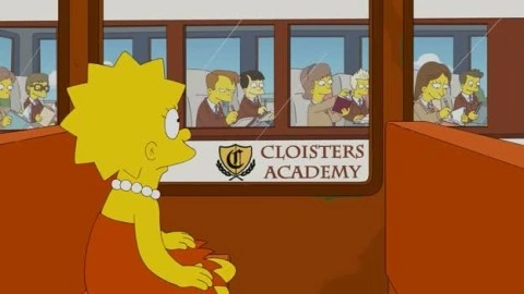 Lisa Simpson, This Isn't Your Life (Lisa Simpson, esta no es tu vida en España e Hispanoamérica) es el quinto episodio de la temporada 22 de Los Simpson. Sinopsis[]Después de descubrir que Maggie está disgustada por haber perdido uno de los Happy Little Elves coleccionables, Homer lleva a la familia a una estación de Texxon. Esto lleva a Homer a comprar gasolina continuamente para tratar de ganar el raro juguete Baby Must Have. Después de fallar, navegan por el distrito de la ciudad donde creció Marge. Mientras visita la antigua casa de los Bouvier, Lisa descubre que Marge era una estudiante de primer nivel. Mientras tanto, durante una acrobacia en el patio de la escuela mal drenado, Bart salpica el barro sobre Nelson. Sin embargo, cuando Nelson intenta golpearlo, Bart se resbala y, sin darse cuenta, le da una patada en la cara a Nelson, lo que lleva a Bart a convertirse en el nuevo matón de la escuela. Más tarde, Lisa le pregunta al director Skinner sobre su madre y él confirma que Marge era muy inteligente en su infancia, especialmente en segundo grado. Sin embargo, esto no le ha impedido convertirse en una madre ama de casa estereotipada. Skinner advierte a Lisa que probablemente tendrá el mismo futuro porque, a pesar de su potencial, Skinner se da cuenta por experiencia de que los niños a menudo tienen el mismo destino que sus padres. Lisa se pregunta por qué Marge se convirtió en ella, y después de mirar el trabajo y las fotos de la escuela secundaria de su madre, descubre que las calificaciones de Marge se desplomaron después de conocer a Homer. Su padre le dice que eventualmente todos conocerán a su 'Homer', y Lisa no será diferente. Al escuchar esto, Lisa intenta no distraerse, limpiando todo en su habitación, incluido su saxofón. Marge se entera por Homer de que Lisa no quiere ser como ella y está angustiada. A pesar de sus mejores esfuerzos, Marge se muestra distante con Lisa y muy atenta con Bart por querer ser como ella. Aunque es un inepto, Homero hace todo lo posible para animar a Lisa dejando un siete de tréboles en su bolsa de almuerzo cuando Marge se vuelve contra ella. En la escuela, Nelson se enfrenta a Bart en la tetherball, donde Nelson la golpea por error y se tira al suelo, y en el pasillo, donde entra en un casillero y queda atrapado dentro. Pronto, Bart se vuelve temeroso cuando Nelson lo sigue con la intención de que lo moleste. Mientras tanto, parece que Lisa no puede encontrar un área de estudio tranquila. Incluso la biblioteca es ruidosa cuando Willie encera el piso. Un día, en el autobús a casa, Lisa se entera de Cloisters Academy después de observar un autobús en un semáforo al lado del autobús escolar. Ve a muchos niños en sus estudios con una pequeña orquesta que toca música clásica para ayudar a su ambiente. Al ver la escuela como su única oportunidad de tener un futuro exitoso lejos del que se dirige, Lisa intenta persuadir a sus padres para que la dejen ir. Al principio, Marge se niega debido a las altas tasas de matrícula que los Simpson no pueden pagar. Cuando el director de Cloisters hace un comentario grosero acerca de que Lisa se quedará en Springfield Elementary, Marge se enfada y Homer se da cuenta de esa mirada que significa que nunca aceptará un no por respuesta. Al ser enviados afuera, Lisa y Homer esperan el resultado. Después de esperar un momento, el director y Marge salen de la oficina y el director le dice a Lisa que Marge lo convenció de reevaluar su historial y le ofrece una beca allí. Lisa comienza la escuela en Cloisters Academy y se siente como en casa ya que no tienen que practicar deportes (también discuten la física del juego) y todos tienen su propio maestro (el maestro de Lisa se ofrece a publicar su historia). Más tarde, Bart le cuenta a Marge sobre sus problemas de intimidación con Nelson y se frustra cuando ella asume erróneamente que se trata de Milhouse. Marge le dice a Bart que felicite a Nelson por tener fe en él. Bart intenta evitar un ataque haciendo que Nelson se sienta bien consigo mismo. Esto funciona cuando Bart menciona su aprecio con Nelson por sus golpes, incluso sabiendo dónde golpear la cara durante el día de la foto escolar. Esa noche, Lisa está feliz con su vida ya que la escuela está bien, Homer le da las buenas noches a Lisa y se alegra de que esté bien. Sin embargo, a las 2 de la mañana, Lisa descubre que no le han ofrecido una beca y que solo la aceptaron porque Marge se ofreció a lavar toda la ropa de la escuela. Además, para empeorar las cosas, Marge se ha convertido en una esclava cansada y con exceso de trabajo como resultado. Preocupada por la salud de su madre, Lisa le dice a Marge que los niños de la escuela son snobs y que preferiría ser como ella que como ellos. Mientras abraza a Marge cuando ella no está mirando, Lisa tiene una mirada triste y culpable en su rostro. Estaba mintiendo para hacer feliz a su madre y se entristece más cuando se da cuenta de que tuvo que renunciar a sus propios sueños futuros de tener éxito sin distracciones. Bart y Nelson son amigos y han estado bebiendo jugo durante horas. Homer incluso logró robar un Baby Must Have de la tienda Texxon para mantener feliz a Maggie. Raphael, el gerente de la tienda, llega a la escena del Texxon y pregunta si el ladrón se llevó algo de dinero. Cuando le dijeron que eran solo los juguetes y que no había protección de vidrio, dice "¡Lo hizo ahora!" y el episodio termina con Raphel llenando sus bolsillos con la caja registradora. |