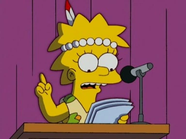 Little Big Girl (Pequeña gran niña en España y Pequeña niña grande en Hispanoamérica) es el duodécimo episodio de la temporada 18 de Los Simpson. Sinopsis[]Todo comienza cuando, en su granja, Cletus está ordeñando a su vaca cuando, accidentalmente, patea una linterna, desencadenando un incendio. En contraste a los famosos rumores del origen del Gran Incendio de Chicago, la vaca de Cletus apaga el fuego pateando un balde con agua. Sorprendido, Cletus deja caer un cigarrillo de su boca, iniciando un salvaje incendio en todo Springfield. Todos tratan de extinguirlo, pero nada es suficiente. En la Escuela Primaria de Springfield, el director Skinner le pide a Willie que consiga los extintores de fuego, pero descubre que habían sido robados. Aparentemente, Bart se había preparado para usarlos para una carrera alocada sobre un carrito. No obstante, mientras el carrito sale disparado como un cohete sobre la ciudad, la espuma de los extintores apaga rápidamente el incendio, y Bart es aclamado por todos. El alcalde Joe Quimby le recompensa a Bart con un deseo, y después de pensarlo unos segundos, Bart pide una licencia: "Quiero una licencia", "¿Para matar?", "No, para conducir". Bart comienza a usar el coche de Homer, pero con la condición de que llevaría un celular para recoger a los miembros de la familia, como un taxista. Pronto se da cuenta de que es una molestia total y escapa a North Haverbrook despues de pierde la pacienza para su papá, en donde conoce a una chica de quince años llamada Darcy, quien cree que Bart tiene dieciséis años. Los dos comienzan a tener una relación romántica y Darcy pronto propone que se casen. Bart se asusta por esto y revela que tiene sólo 10 años. Darcy revela que está embarazada, y que no sería una buena madre si no le da un padre a su hijo. A pesar de la reacción inicial de Bart, Darcy admite que él no es el padre, si no que el verdadero padre es un estudiante de intercambio noruego y quiere casarse porque sus padres se enojarían con ella por su embarazo. Bart acepta casarse con Darcy y ambos se van a Utah, en donde las restricciones para el matrimonio eran menores que en otros lugares. Finalmente, Homer, Marge y los padres de Darcy los atrapan y tratan de detenerlos, sabiendo que ella es mayor y el un niño para casarse. La madre de Darcy revela que ella misma estaba embarazada y la familia acuerda hacer pasar a los dos bebés como mellizos y no revelar el pecado de Darcy. Darcy y Bart terminan con su relación, mientras Bart le asegura que se volverían a encontrar, con lo cual ella está de acuerdo. Más tarde, Bart admite ante Homer que había pensado que sería padre y ambos terminan manejando felizmente mientras cantan una canción llamada "Twinkle Twinkle Little Star" en la noche. Mientras tanto, cuando Lisa lucha por encontrar cosas interesantes e intriga en el patrimonio de su familia para una presentación escolar, decide tomar una licencia creativa. Inspirada por la broma de Bart de "indios de manteca" y las cortinas de la cocina (que tienen mazorcas estampadas), Lisa decide convertirse en Americana Nativa, y ser de la tribu Hitachee (cuyo nombre lo había obtenido de una distorsión de la marca del microondas de la familia). Lo que comienza en un adorno inocente termina en una red de mentiras cuando Lisa es elegida para representar a la escuela y su "gente" en el Ayuntamiento, vestida como una speaker de las Tribus Nacionales Americanas. Finalmente, la niña admite que había mentido sobre su patrimonio, lo cual hace que todos los otros admitan que no son Nativos Americanos. Homer compara a su hija con las Noticias CBS en una referencia a la controversia por los documentos de Killian de 2004. Además, menciona en el final que su tatara-tatara-abuela había sido una verdadera Nativa Americana, para enfado de Lisa. |