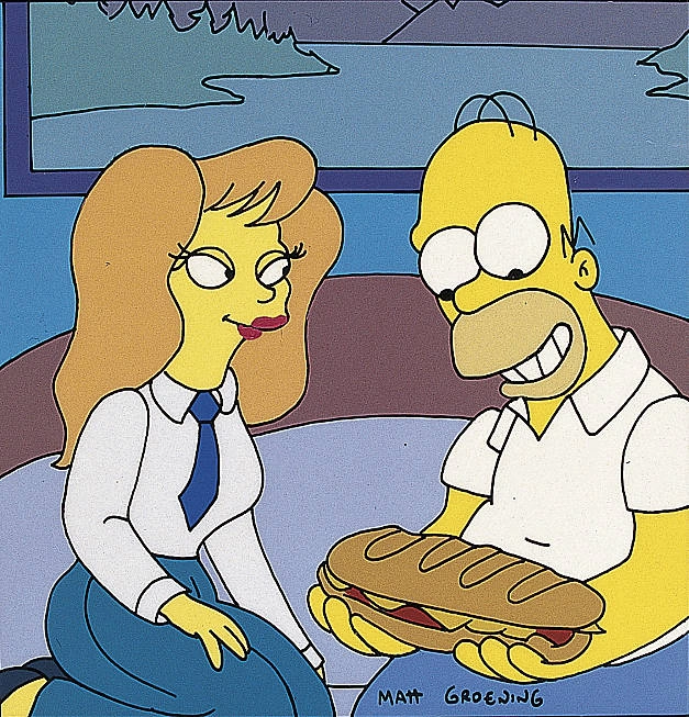 The Last Temptation of Homer (La última tentación de Homer en España y La última tentación de Homero en Hispanoamérica) es el noveno episodio de la temporada 5 de Los Simpson. Sinopsis[]Después de que Homer y sus compañeros de trabajo escaparan milagrosamente de un gas venenoso que Homer había dejado escapar, Charlie, un obrero, es despedido al haberle pedido una salida de emergencia al Sr. Burns. Cuando están buscando un reemplazo, el Departamento de Trabajo le exige a Burns cambios en la Planta, uno de los cuales era contratar alguna mujer en su personal. Una guapa ingeniera nueva, llamada Mindy Simmons, es contratada. Homer siente una gran atracción hacia Mindy, la que crece más aún al ver que les gustaban y hacían las mismas cosas. El ángel guardián aparece en una alucinación para mostrarle a Homer cómo sería su vida si se casara con Mindy y dejara a Marge; en el sueño, él es un millonario feliz. Al terminar la fantasía, las cosas se ponen peor, ya que Homer y Mindy habían sido seleccionados para representar a la Planta Nuclear de Springfield en la Convención de Energía que se realizaría en la Ciudad Capital. Allí, pasan mucho tiempo juntos, lo que hace que Homer tema engañar a su esposa. Mindy le dice a Homer que ella estaba enamorada de él, pero que era momento de decidir entre ella y Marge. Homer declara su incondicionalidad con Marge, y Mindy acepta su decisión. Mientras tanto, Bart es enviado a un oculista, luego de que se descubra que no tenía buena vista. La oftalmóloga le da unos gruesos lentes, que el niño debía usar por dos semanas. También encuentra que su cuero cabelludo estaba seco, por lo que lo manda al dermatólogo. Allí, el doctor le coloca un gel pegajoso en el cabello que debe ponerse cada media hora, lo que le da aspecto de nerd, el cual es complementado por unos zapatos enormes recomendados por un especialista y una dentista lo nebuliza, esto le hace parecer que habla como un nerd. Al siguiente día en la escuela, el niño es perseguido por su aspecto durante dos semanas. Cuando corría de los abusones, Bart, tropieza por sus gigantescos zapatos y Martin le muestra su escondrijo de nerds tras un casilleros. Bart, luego de las dos semanas, se saca sus anteojos y sus zapatos y los lanza a casa de Flanders. Al otro día, Bart, vuelve con su antiguo aspecto pero cuando entra al pasillo lo golpean igual. Predicción[]En este capítulo, se hizo realidad un dicho que dice el Sr. Burns cuando está con Zutroy y el Departamento de Trabajo. Cuando una mujer entra en la conversación dice lo siguiente: "Hayamos un equipo de fútbol desaparecido trabajando en el reactor", en el cual el Sr. Burns dice lo siguiente: "Ese avión se estrelló en mi propiedad". El 28 de noviembre este hecho se convertiría en una de las predicciones más fatales y terroríficas de Los Simpson. Ese mismo día a la noche un avión que se dirigía a Medellín se estrelló a minutos de llegar a la ciudad. Murieron 71 personas, entre ellos una gran parte del plantel brasileño de Chapecoense, y solo sobrevivieron solo 6. Ahora mismo, es la predicción acertada más reciente de Los Simpson. Referencias[]