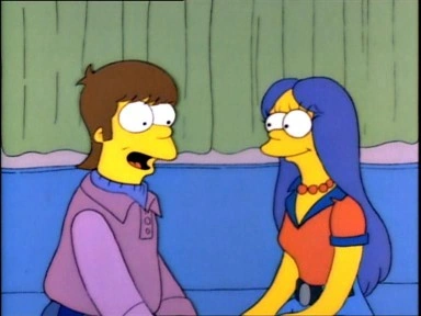 The Way We Was (Así como éramos en España y Los años que vivimos en Hispanoamérica) es el duodécimo la temporada 2 de Los Simpson. Sinopsis[]Cuando la televisión se rompe, Marge y Homer les cuentan a los niños la historia de cómo se conocieron. Todo comienza en 1974, cuando Marge y Homer están en el último año de la secundaria. Mientras Homer es un alumno problemático y revoltoso, Marge es una buena estudiante y muy responsable. Sin embargo, un día, en una protesta feminista, Marge organiza una quema pública de sostenes. Esto hace que la lleven castigada a un aula de detención, en donde estaban Homer y Barney, ya que habían fumado en el baño de los varones. Homer queda instantáneamente impresionado por la belleza de Marge, impidiendo a Barney que le pida salir. Para ver más a Marge, Homer se une al club de debates políticos, del que Marge formaba parte. Sin embargo, Marge está más interesada en Artie Ziff, un buen estudiante, que había conseguido triunfar en los negocios. Como Homer ve que no está avanzando con Marge, prepara un plan B: le pide a Marge que sea su tutora de francés para así poderle decir palabras tiernas. Cuando están terminando la "clase", Homer invita a Marge a ir al baile de graduación con él. Ella acepta, pero Homer le cuenta que en realidad él no era un estudiante de francés, y que todo lo que había hecho era un plan para acercarse a ella. Marge, furiosa, le dice que no quiere verlo nunca más, pero Homer, ignorándola, telefonea a Barney para decirle que tiene pareja para el baile. Homer no se da cuenta de que Marge lo había rechazado, por lo que la noche del baile se presenta en su casa, buscándola. Marge le dice que no va a ir al baile con él, sino con Artie Ziff, por lo que Homer va al baile solo. Después del baile, Artie y Marge van en coche a un mirador de Springfield, en donde Artie se sobrepasa un poco con Marge, por lo que ella le dice que la lleve a casa. Mientras tanto, Homer, que iba en limusina, se da cuenta de que no tiene más dinero y tiene que caminar hacia su casa. Cuando Homer está caminando, un coche comienza a tocar la bocina y a encender las luces. Homer piensa que el conductor del coche quiere que se aparte, pero se da cuenta de que era Marge que pasaba a buscarlo para llevarlo a su casa. Ella, una vez que Homer está en el coche, le dice que se había dado cuenta de que tendría que haber ido al baile de graduación con él y Homer le dice que no la dejaría nunca más. Lisa y Maggie les encanto la historia, mientras que a Bart no le gusto y saca la lengua en señal de aburrido y el capítulo termina. Enlaces externos[]