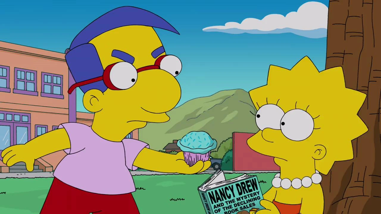 What Animated Women Want (¿Qué quieren las mujeres de dibujos animados? en España y Lo que quieren las mujeres animadas en Hispanoamérica) es el decimoséptimo episodio de la temporada 24 de Los Simpson. Sinopsis[]Homer y Marge han organizado una cita para almorzar en el Swanky Fish. Mientras esté allí, Marge está emocionada de poder tener conversaciones de 'personas adultas' ya que los niños no están con ellos. Cuando intenta iniciar una conversación, Homer no parece interesado y solo se concentra en comer la comida. Enfurecida, Marge sale corriendo del restaurante y pide un taxi para volver a casa. Preocupado por su matrimonio, Homer intenta arreglar sus problemas con Marge. Saca una lista de tareas pendientes de su billetera que Marge le había dado. Termina la lista y le muestra a Marge; ella está decepcionada de él porque la lista era de seis años antes. Homer regresa al restaurante japonés al que fueron anteriormente en el episodio y el jefe de cocina le da consejos sobre relaciones. Homer toma algo de comida del restaurante de su casa y se la ofrece a Marge; ella está casi impresionada, pero nuevamente está descontenta con él cuando Homer comienza a comer él mismo. Sin saber qué hacer, Homer va a la taberna de Moe y habla con Moe sobre sus problemas matrimoniales. Moe sugiere reconquistarla excitándola con sexo. Como resultado, Homer va a la tienda de sexo local donde compra una variedad de máquinas y juguetes sexuales diferentes. Cuando le muestra a Marge todo lo que ha comprado, ella se siente confundida y poco impresionada. Homer se sienta en una de las máquinas por error y resulta herido. Lo llevan al hospital y mientras lo atienden se reconcilian. Luego, en su patio trasero, prendieron fuego a todos los artículos sexuales y Marge admite que fue demasiado dura con él y dice que pase lo que pase, él intentará arreglar las cosas. Mientras tanto, Milhouse está sentado con Bart en la cafetería de la Escuela Primaria Springfield. Mira a Lisa y espera que ella se acerque a él. Ella comienza a acercarse a él y él se emociona, pero ella solo se acercó a la mesa para decirle a Bart que Marge había confundido sus almuerzos. Ella le pregunta a Milhouse si puede comer su pastelito. Después de haber visto Un tranvía llamado deseo para una tarea de clase, asume la personalidad de Marlon Brando. Por lo tanto, elige ser grosero y desdeñoso con ella, negándose a su pedido de comer su pastelito. Esto hace que se gane el respeto de Lisa. Confundido sobre por qué funciona su nueva táctica, continúa con esto para mantener a Lisa interesada en él. Buscando respuestas sobre si está bien fingir ser alguien que no es, se acerca a la consejera escolar (Wanda Sykes). Antes de que pueda darle una respuesta, recibe una llamada notificándole que ha sido despedida. Sorprendida, le dice a Milhouse que debería seguir fingiendo ser quien no es, porque su personalidad habitual es aburrida. Sintiendo que está traicionando a su personaje, arroja pastelitos (los mismos de antes en el episodio) a la ventana de Lisa. Se disculpa por pretender ser alguien que no es y son más felices. Gag de sofá[]En una parodia del intro de la serie Breaking Bad, Marge hornea pasteles y Homer viene y toma algo de la mezcla. Ella pone los bizcochos en el horno y se elevan. A continuación, tiene una venta de pasteles. Vemos entonces a Walter White y Jesse Pinkman ver el gag del sofá en la televisión. |