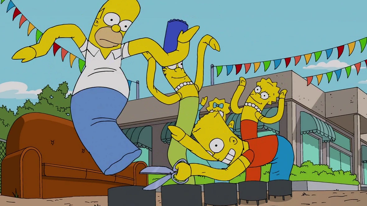 Yellow Subterfuge (Subterfugio amarillo en España e Hispanoamérica) es el séptimo episodio de la temporada 25 de Los Simpson. Sinopsis[]La historia comienza con el director Skinner soñando que él tiene ley y orden en el salvaje oeste. El superintendente Chalmers lo despierta después y le recuerda que está conectado. Él les cuenta a los estudiantes de Springfield Elementary sobre un emocionante viaje de estudios en el que pueden ir en un submarino, pero no todos pueden ir porque hay lugares limitados. Afirma que solo los niños que se portan bien podrán ir y los niños que se tachan no irán, y que todos comienzan como nuevos. Bart toma esto en cuenta y vuela su avión de control remoto con una colmena de abejas que se cernía sobre Skinner de regreso a donde estaba la colmena para dejarla. Bart está muy entusiasmado con el viaje en submarino a pesar de que Marge le recuerda que es posible que no vaya debido a su comportamiento. Pero Bart no está de acuerdo con ella ni con todos los demás e insiste en que se irá de todos modos si se convierte en un buen chico. Bart se deshace de todos los artículos que podrían meterlo en problemas, incluidos sus cojines que entierra en el patio trasero, Homer camina en esa área de "cojines que gritan" hasta que Bart dice que no fue donde los enterró. Lisa está montando en su bicicleta hasta que ve que a Krusty le están quitando todas sus posesiones debido a que está arruinado. Lisa le aconseja a Krusty que venda los derechos extranjeros de su programa haciendo que su programa se transmita en diferentes países. Mientras tanto, el director Skinner comienza a tachar a las personas de la lista después de un comportamiento terrible. Primero Wendell por tirar chicle de su boca al suelo, Jimbo por apuntar una albóndiga a E-mail, Dolph por tocar con los labios la fuente de agua, Database por no tener un pañuelo y Lisa pero ella fue la única que pidió que se la quitaran. debido al uso del poder que Skinner está usando. Bart intenta impresionar a Skinner vistiendo su traje azul formal y limpiándose las rodillas. Skinner parece impresionado por él. Más tarde, Bart se está cansando de no hacerle bromas a nadie y de obtener A+, que él dice como "Extrañas marcas rojas". De camino a la escuela, el autobús escolar se descompone antes de llegar a la escuela. Bart entra en pánico y escapa del autobús e intenta correr a pie para llegar a la escuela a tiempo. Bart intenta tomar un taxi, pero Milhouse se le adelanta y lo obliga a correr a la escuela después de saltar sobre los letreros de construcción que se cayeron de los Obstáculos de los Oscar. Para cuando Bart llega allí, el autobús lo ha vencido, pero de todos modos logra llegar a la escuela a tiempo, solo para ser tachado de la lista por dejar huellas de barro en el piso de la escuela. Bart no deja de intentar recuperar su nombre. Intenta persuadirlo de que lo devuelva usando clips del "Presidente Obama", que fallan debido a un pájaro que lo distrae. Lo compensa lavando el auto de Skinner y espera emprender el viaje. Sin embargo, en lugar de llevarlo en el submarino, Skinner termina traicionando a Bart al dejarlo fuera del viaje, decepcionándolo profundamente. Cuando Skinner cierra la escotilla con una sonrisa malvada en su rostro, los estudiantes bien educados aplauden con alegría, incluidos Nelson, Milhouse y Ralph. Al atardecer, Bart todavía está muy triste cuando Homer llega al muelle. Homer trata de hacer que Bart se sienta mejor diciendo que el submarino probablemente no fue tan divertido de todos modos. Mientras Milhouse dispara el torpedo que derriba un faro, Bart le pide a Homer un consejo para vengarse de Skinner, y Homer planea hacerle una broma. Al día siguiente, Skinner continúa con su rutina diaria hasta que descubre que su madre ha sido apuñalada por la espalda. Homer y Bart llegan a su casa para "investigar", ya que Skinner cree que él fue el asesino. Homer sugiere que Skinner debería comenzar su nueva vida con su nueva identidad "Dick Fiddler". Más tarde, Homer y Bart se deshacen de Skinner escondiéndolo en un saco de papas y llevándolo a un vehículo Budget Dog. Esto no tiene éxito ya que Skinner está sentado en uno de los sofás de los Simpson cuando Homer y Bart regresan. Marge entra y les dice a Homer y Bart que la broma ha durado lo suficiente y que necesitan disculparse por una vez. La madre de Skinner llega y menciona por qué estaba en la broma, lo que hace que Skinner se sienta aún peor ahora que está viva. Esto sirve para enfurecer más a Marge, a pesar del intento de Homer de seducirla para que se calme. Después de escuchar lo que él había mencionado acerca de estar contento de que ella muriera, Agnes le devuelve el dinero diciéndole que ha tirado las pastillas que la hacían amable y que será mucho más mala con él. Con Seymour cada vez más miserable, Bart y Homer se vengaron de él. Sin embargo, por despecho, Marge decide decirles lo que piensa y presumiblemente son castigados por ella. Mientras tanto, los "Krustys" de diferentes países entrenan para ser como Krusty y terminan siendo bastante grandes. Krusty agradece a Lisa por ayudarlo. Krusty descubre que los otros Krusty son más populares que él. Así que los reúne en Florida para decirles que no ganarán tanto como Krusty. Krusty está siendo perseguido por los otros Krustys. Su supervisor le pregunta por qué se convirtió en payaso, Krusty responde. |