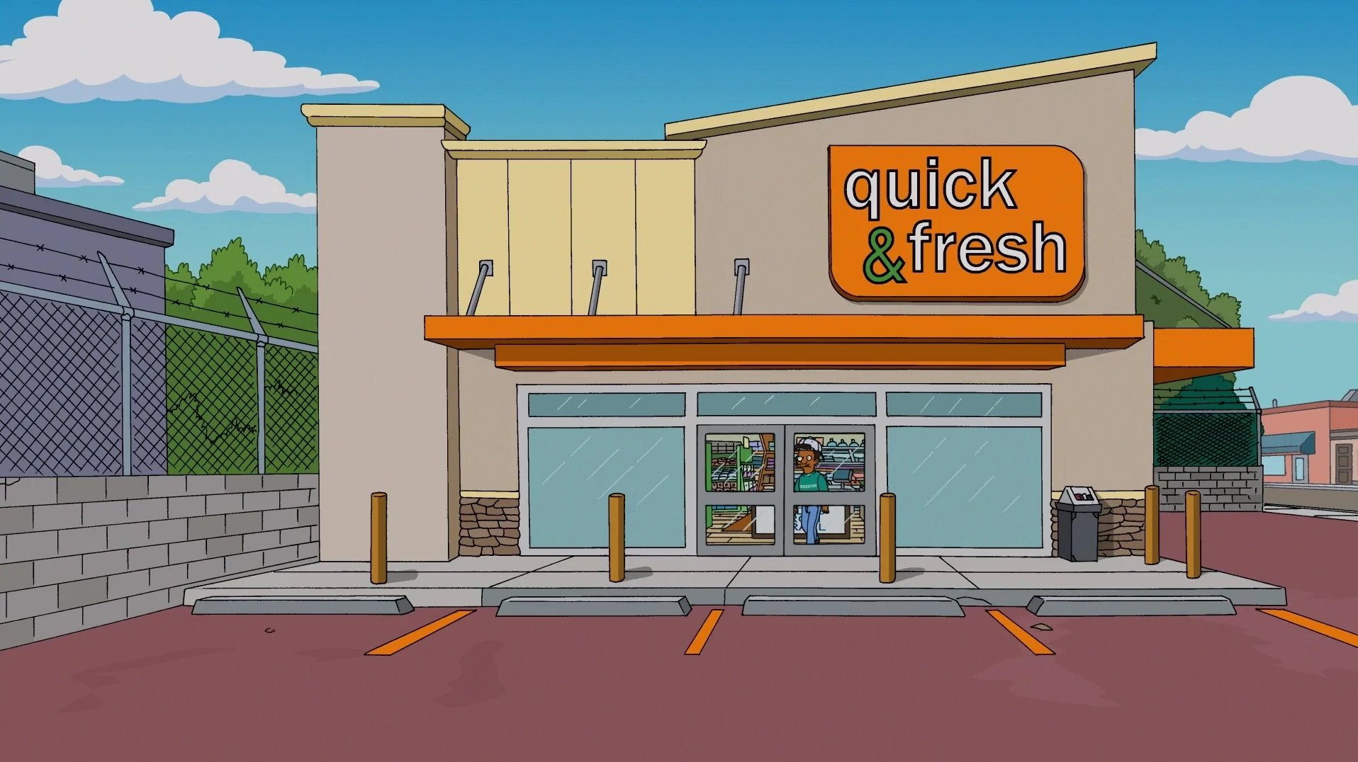 Dans l'épisode Beaucoup d'Apu pour un seul bien de la Saison 27, le Kwik-E-Mart est détruit par Bart lors de la parade, le Kwik-E-Mart est remplacée par le Quick & Fresh.