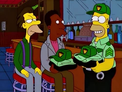 Quand la nouvelle force de police arrête Gros Tony, ce dernier annonce qu'il va descendre Homer avec sa bande s'il ne quitte pas la ville. Homer ne prend pas la menace au sérieux et refuse de quitter la ville. Gros Tony et sa bande se rendent devant la maison des Simpson et sont sur le point de tirer sur Homer, mais Maggie parvient à le sauver en tirant sur la bande de Gros Tony. Homer décide alors de donner le badge à la prochaine personne qu'il voit, Wiggum apparaît et prend le badge, marquant ainsi la fin de la force de police d'Homer.