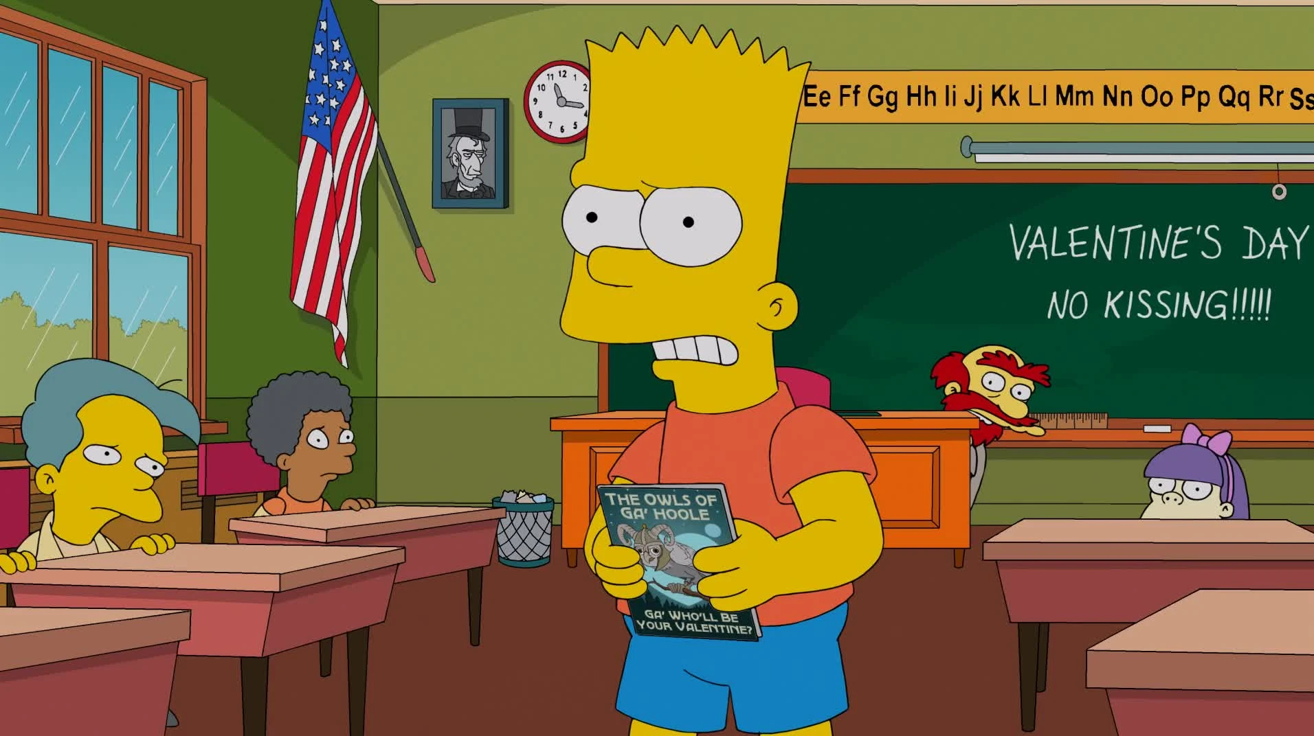 De son côté, Nelson distribue des cadeaux de Saint-Valentin aux autres élèves de l’école élémentaire de Springfield et exige de recevoir une carte en retour. Réticent, Bart décide de lui en offrir une à sa façon...