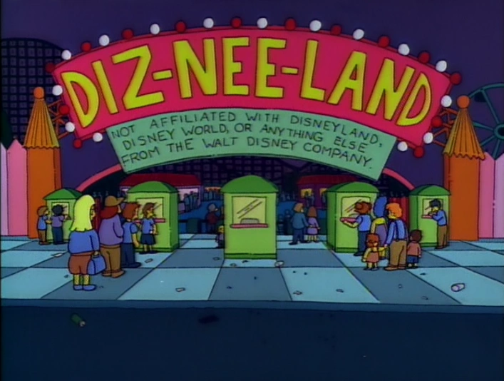 - Diz-Nee Land jest parodią Disneylandu, Anaheim, kalifornijskiego parku rozrywki zbudowanego pod nadzorem Walta Disneya, który otwarty został 17 lipca 1955.