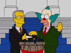 Za sprawą burmistrza Quimby'ego trasa samolotów przelatujących nad Springfield zostaje przeniesiona: od teraz każdy z nich mija po drodze dom Simpsonów. Aby zmienić stan rzeczy, rodzina postanawia zwrócić się do miejscowego kongresmena, jednak zostaje to uniemożliwione przez jego niespodziewaną śmierć. Chwilę później Bart wpada na pomysł, by na jego stanowisku obsadzić Klauna Krusty'ego.