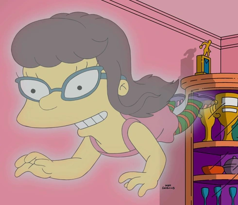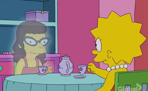 Rządna zemsty Rachel próbuje zabić Marge, rzucając w nią nożem, jednak w ostatniej chwili osłania ją kot Simpsonów, Śnieżynka V. Wymyślona przyjaciółka ponawia próbę, lecz Bartowi i Lisie udaje się ją powstrzymać. Rachel stwierdza, że i tak nikt poza Lisą nie jest w stanie jej zobaczyć, czemu zaprzecza stojący obok Homer, który widzi ją, ponieważ jest pod wpływem alkoholu. Kiedy wściekła dziewczyna rzuca się na Homera, jego wymyślony przyjaciel Sierżant Parówka blokuje jej drogę.