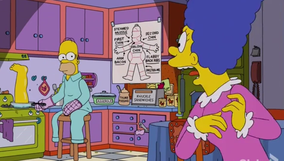 Marge przyłapuje Homera na smażeniu własnej nogi
