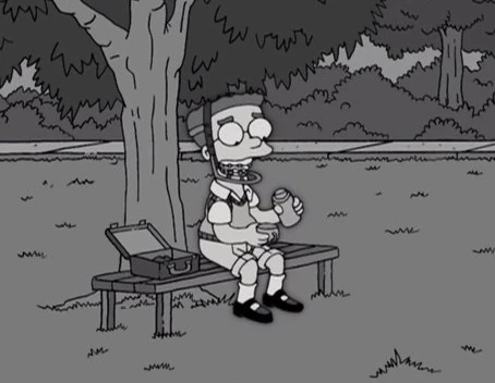 Mały Smithers spędzający przerwę samotnie