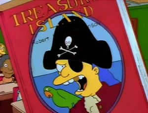 Na escola primária, a Sra. Krabappel dá à sala de Bart a tarefa de que apresentem um relatório sobre o livro que cada aluno tenha Lido. Após a apresentação que Martim faz sobre Ernest Hemingway, Bart tem que fazer a apresentação sobre o livro "A Ilha do Tesouro", de Robert Louis Stevenson.