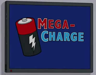 As Baterias Mega Carregadas ( Mega-Charge ) é uma marca de pilha elétrica que aparece em The Marge-ian Chronicles. A marca é uma das patrocinadoras do projeto que pretende instalar uma colônia permanente em Marte.