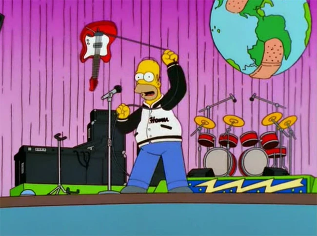 - Homer: "Não é necessário pedir desculpas, pessoal. Vocês são astros do rock, devem ser imprudentes e destrutivos, e ser famosos por um comportamento que levaria pessoas normais pra cadeia".