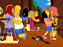 - Na noite do show, Homer ganha um passe-livre e abusa do cartão. Até o banheiro feminino ele invade.