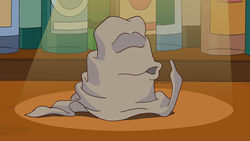 do pano de lã do demônio . A tapeçaria foi então colocado em uma catedral. Vikings, em seguida, invadiram a Catedral, um viking se decidiu se tornar um ladrão de arte. Este viking, em seguida, esfregou a tapeçaria entre sua virilha antes de tomar uma mordida fora dele. Este foi primeiro sentimento a tapeçaria da angústia. Bart atira pedras na janela Milhouse e tenta pedir desculpas, mas não consegue. Kirk está atirando pedras para chamar a atenção Luann e um vai para baixo sua garganta e ela se recusa a deixá-lo para realizar a manobra Heinrich sobre ela. O que restava da tapeçaria acabou de ser trocado por ouro e jóias. Em seguida, caiu nas mãos do rei persa. Depois que ele foi morto por suas muitas esposas, o pano encontrou o seu caminho para a Espanha onde foi usado como uma venda para um homem que estava sendo filmado com setas, em seguida, foi colocado em um bloco de carrasco. A vítima teve mais medo do pano do que do machado. O pano finalmente começou indo para cima novamente, quando ele encontrou em seu caminho Michelangelo, que pintou o teto da Capela Sistina com ele. Após a pintura ser concluída, porém, ele foi posto de lado e logo esquecido. O pano então gritou de dor quando Lenny encontrou ele. Lenny sugeriu a Moe ter um pano novo, mas Moe não aceitou. Bart entrou sorrateiramente no quarto de Milhouse e pediu desculpas novamente, sem sucesso. Depois disso, o pano se tornou tecido em uma das bandeiras dos Estados Confederados da América. Depois que a casa estava em incendiada, foi então usada por uma família pobre para fazer sopa de pano. Finalmente se transformou em uma bandeira que alguns usaram na escalada ao Monte Everest mas no meio o moço que estaria escalando para subir la morreu . E a bandeira foi pego por um yeti, que deu o pano para o seu filho, Moe Szyslak. Bart viu Milhouse novamente pela manhã e Bart disse para Milhouse escolher alquem para dar um soco na propria cara. Milhouse pede Drederick Tatum para socá-lo, prejudicando Bart muito, mas eles se tornaram amigos de novo. Uma noite, quando Moe estava dormindo, alguém pegou o pano, embora o pano gostasse de Moe, pegaram e colocaram em uma máquina de lavar. Assim depois de ser lavado Marge pegou e devolveu a Moe. Ele estava feliz com isso, mas quando o pano revelou que toda a família Simpsons (e Milhouse) eram seus amigos, Moe jogou o pano para fora da janela. Que foi pego por Ajudante de Papai Noel, que adorou. O pano gostou desta vida, com exceção da luta ocasional entre o Ajudante de Papai Noel tinha com Maggie sobre ele.