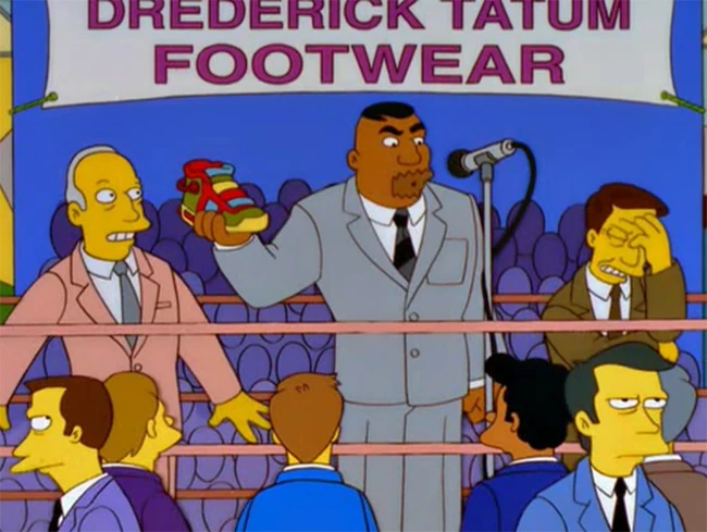 - De boca bem fechada (13x09) - Drederick Tatum está em Springfield recebendo uma homenagem, inaugurando, junto do Prefeito Quimby, uma estátua sua por ajudar a "nocautear" a sujeira (lixo, mas pode ser a desordem também) na comunidade. Homer quebra o queixo chocando-se contra o punho da estátua e Tatum conclui: "Ótima luta! Agora vamos festejar."