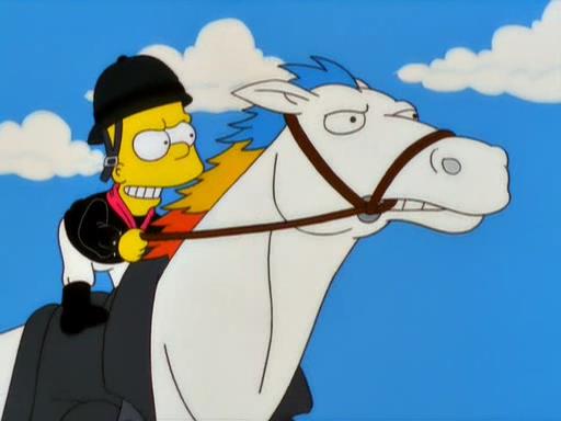 - Ele lembra que a família Simpson já teve um cavalo e que houve consequências hilariantes, uma clara referência ao episódio "Um cavalo para Lisa" onde Lisa ganha o pônei que tanto desejava e Homer teve que trabalhar à noite no Kwik-E-Mart para pagar as despesas do animal.