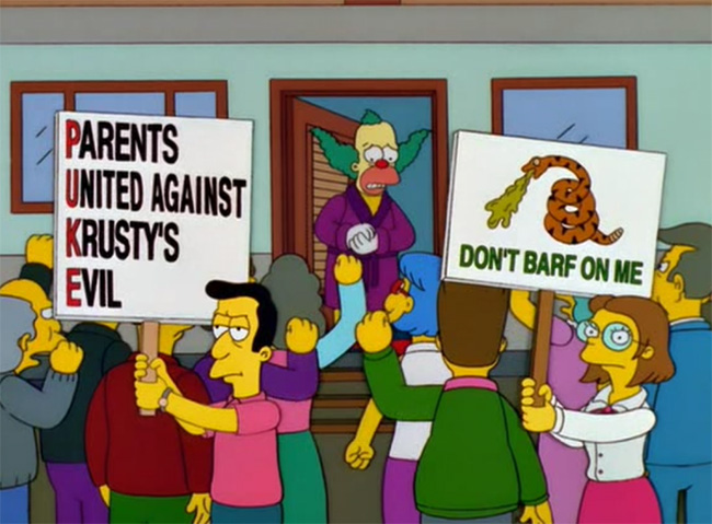 - Krusty: "...cheguei onde estou delatando pessoas nos anos 50";