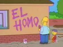 - Homer escreve "El Homo" numa parede, se referindo ao "El Barto" de Bart, mas, aquilo é interpretado como sendo uma confissão dele a respeito de sua sexualidade;