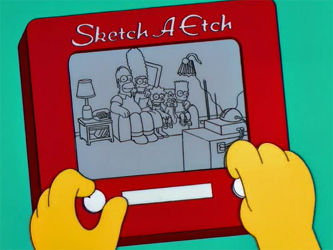 A cena dos Simpsons sentados no sofá é feita num "Traço Mágico", antigo brinquedo de desenhar mecanicamente.