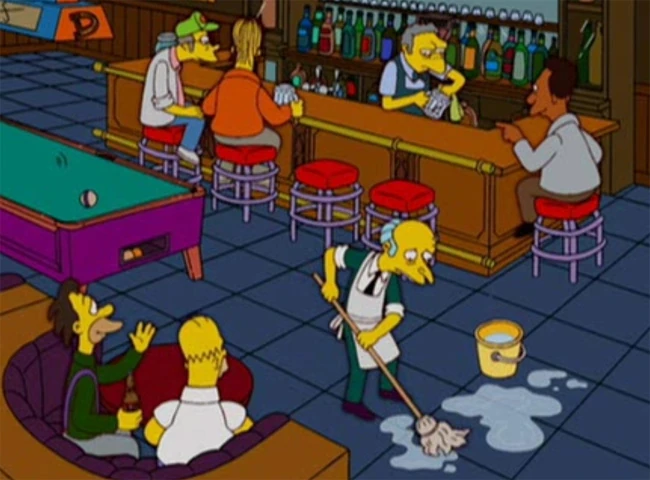 Ela começa no Excluders' Club, uma casa noturna bem exclusiva que o Sr. Burns costuma frequentar. Um dia, o Texano Rico entrou na casa e derramou óleo cru em cima de Burns. Furioso, Burns desafiou o Texano para um duelo, mas acabou mudando de ideia e preferiu fazer uma gincana. Ficou decidido que aquele que conseguisse juntar os 10 itens de uma lista primeiro seria o vencedor (caça ao tesouro), e o prêmio, a passe de todos os bens terrenos do oponente. Embora Burns tenha se saído bem e conseguido a maior parte dos itens da lista (incluindo um cabelo do Homer) a última tarefa - uma foto tirada com uma criança sorrindo - se tornou um verdadeiro problema. Já o Texano não teve dificuldades, assim, ele acabou ganhando a caça ao tesouro e toda a fortuna do Sr. Burns. Sem nenhum tostão, Burns decide recomeçar do zero. Então, ele arrumou um emprego no bar de Moe.