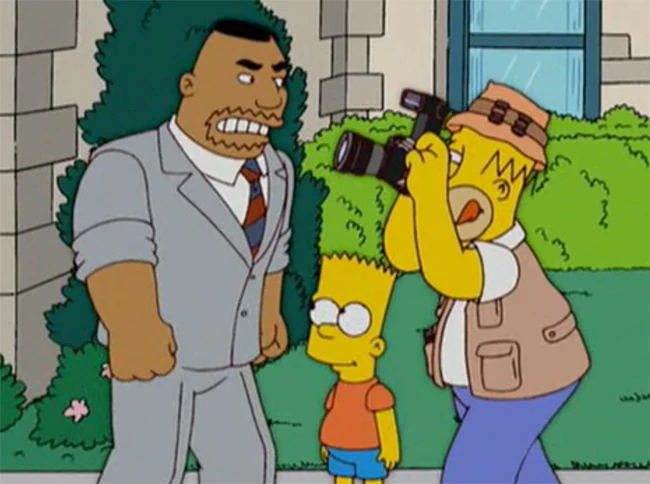 O paparazzi Homer resolve tentar a sorte diante do Hotel Pillowmint, onde o pugilista campeão dos pesos-pesados Drederick Tatum está hospedado. Bart fala pra seu pai fazer Tatum lhe surrar, coisa bem fácil para Homer, que critica o último CD de hip-hop do campeão – "presunçoso e desnecessário". Tatum, antes calmo e civilizado, rapidamente fica furioso e parte pra cima do paparazzi. O campeão elimina várias máquinas fotográficas de Homer, que consegue uma boa imagem e também um forte murro.