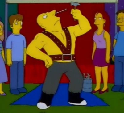 Impervo, o Indolor é um dos artistas do Circo Intinerante do Coronel Texas. Ele é capaz de martelar pregos no nariz sem sentir nenhuma dor aparente. No entanto, quando Bart Simpson atropelou seu pé com o carro de Adolf Hitler, ele gemeu de dor.