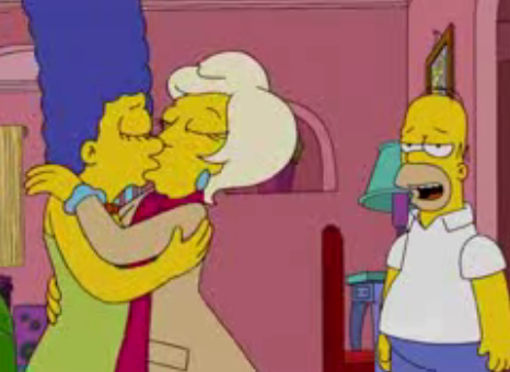 Marge e Lindsey Naegle, em beijo lésbico na fantasia de Homer