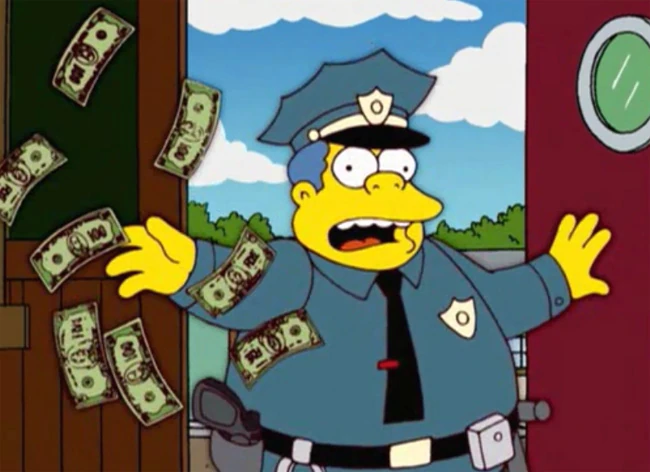 - O chefe Wiggun entra no bar para saber quem estacionou na frente do hidrante, mas acaba dando um flagrante numa possível cena de crime. Mas, policial exemplar que é, não estando preparado para aquilo, abandona o local alegando que não viu nada e ainda deixa uma gorjeta.