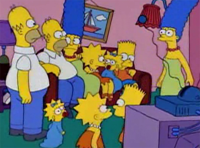 Os Simpsons chegam na sala mas não podem sentar porque o sofá já está ocupado... pelos Simpsons ?!