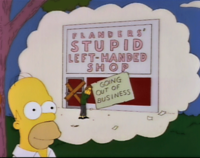 Ned Flanders resolve abrir seu próprio negócio, chamado Canhotório, uma loja que vende instrumentos e produtos para os consumidores canhotos. Homer, cheio de ressentimentos em relação a Ned, espera que o Canhotório vá mal. É desnecessário dizer que o negócio não é um grande sucesso e Ned vai à falência, forçando a família a vender seus móveis e posses em um bazar(onde Homer é o maior comprador). Abatido pela culpa, Homer recruta todos os canhotos que conhece inclusive o Sr. Burns e Moe Szyslak para comprar os produtos de Ned, e salvar seu vizinho da ruína financeira.