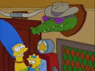 Quando os Hibberts estão de folga, eles param na Taverna do Moe para comer algo. A decepção com o local, juntamente com o comentário de Julius Hibbert "Eu pensei que era um restaurante familiar", leva Moe a mudar o bar. O restaurante é popular no começo, com Moe dando o "Million Dollar" Birthday Fries e sua garantia de que a comida é grátis se ele não sorrir quando o cheque chegar. O primeiro comentário de Marge ao bar recém-decorado é: "Um jacaré de óculos? Agora eu já vi de tudo". Infelizmente, quando Moe, irritado com o estresse de administrar um restaurante familiar, diz palavrões na frente das crianças, os clientes saem. A música do comercial do Feedbag do tio Moe para a família é "Venha para o tio Moe para se divertir em família, é bom bom bom bom, bom bom bom!"