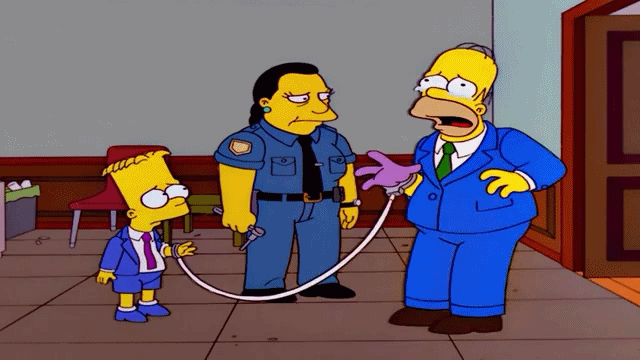 - A cena em que a família chega ao fórum mostra que eles já compareceram àquele ambiente várias vezes, de modo que Lisa cumprimenta uma policial pelo nome dela e o juiz Snider também demonstra certa familiaridade com Bart.