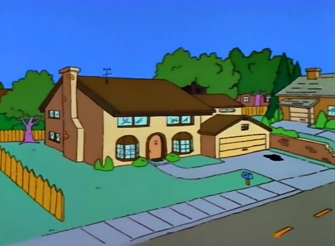 Ранее Симпсоны жили в небогатой квартире, из детей тогда был только маленький Барт. Эйб Симпсон продал свой старый дом, выписав Гомеру чек на $ 15.000, чтобы он смог купить дом на Вечнозеленой. Неизвестно, заплатил ли дедушка Эйб полную стоимость дома или Гомер выплатил часть суммы. Учитывая среднюю стоимость коттеджей в Америке (хотя бы и по курсу 80-х), эта цена кажется неправдоподобно низкой.