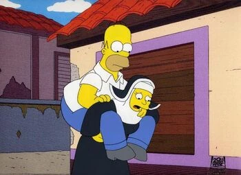 Лиза показывает им фотографию Рональдо - так зовут мальчика. Лиза говорит, что он писал ей каждый месяц, а потом перестал. Поэтому она и позвонила в приют. Там ей сказали, что он исчез. Мардж удивляется, как Лиза сумела наговорить на $400. Лиза объясняет, что с нее начали тянуть пожертвования, "а с монашкой трубку не бросишь". Мардж понимающе относится к ее заявлению о монашке. Говорит, что "они - колдуньи".