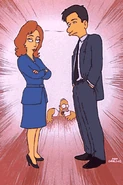 Дана Скалли и Фокс Малдер – главные герои сериала FOX "Секретные материалы". Обоих озвучили Джиллиан Андерсон и Дэвид Духовны, играющие этих персонажей в сериале соответственно.