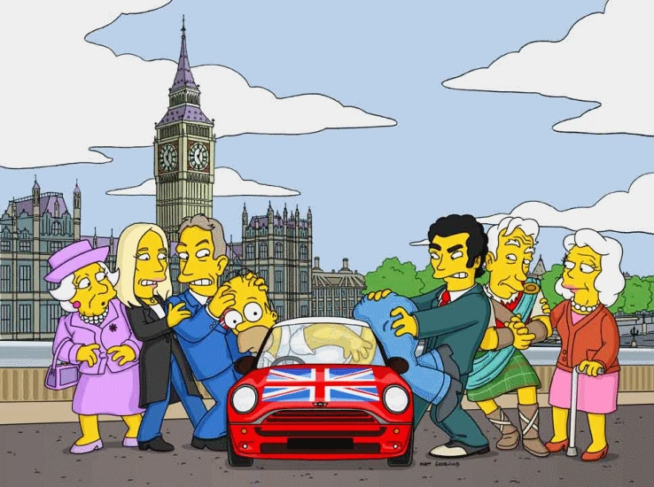 В аэропорту Лондона Симпсонов приветствует премьер-министр Великобритании Тони Блэр. Правда Гомер путает его с мистером Бином.
