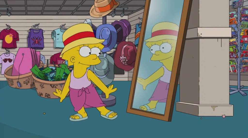 Затем она развлекается на пляже в новой шляпе. Ей делают комплимент насчет шляпы сначала сноубордисты, а затем Дольф. В машине Лиза засыпает, и ее шляпа оказывает у Барта.
