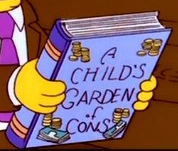 A Child's Garden of Cons is a book about scams written Grifty McGrift who is Abe Simpson actually.