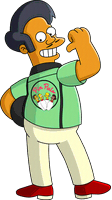 In "Future-Drama", he gives Bart a job at the Kwik-E-Mart and instructs Bart to make a delivery to Mr. Burns.