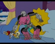 Bestimus Muchos is one of the transforming robots that appears in Treehouse of Horror XIX and leader of the Posi-Bots. It was originally a toy truck found by Bart Simpson, then quickly transformed into a Malibu Stacy car to persuade him to take it home and give him to Lisa as a Christmas Present. One night, Bestimus Muchos shot beams of light from his eyes and turned many of Lisa's room electronics and more of the Simpson house-hold electronics into more Posi-Bots for his army.