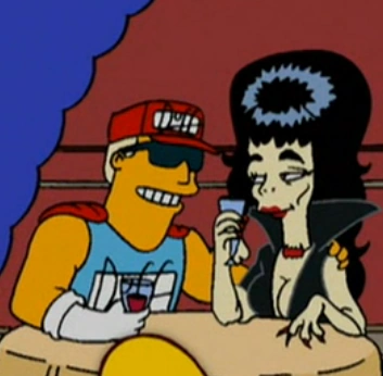 Booberella hosts late-night monster movies and always dresses in low-cut vampire-style outfits that show lots of cleavage. She is well aware of her large breasts, and constantly draws attention to them, makes reference to them, or tells people to look at them.