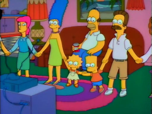 Homer, though, has other plans for the award money. After Bart and Lisa destroy the couch during a session of "broom vaulting" in the "living room Olympics," Homer finds a store selling a vibrating chair for $2000, which he immediately falls in love with. Marge talks him out of making the purchase, stating that he could use the money to buy her a new washer and dryer. Meanwhile, Herb, looking for the Simpsons, accidentally goes to the Flanders' house next door. However, he's in luck as they clean and bathe him (Todd want to anoint the sores on Herb's feet which disappoints him when it's his mom's turn) and give him a new suit. After giving his gratitude to the Flanders, Herb then goes to the Simpson home. When Homer answers the door, Herb beats up Homer by punching him in the face. When Homer asks about the beating Herb tells Homer he's still mad at his brother for bankrupting him. He is however happy to see the rest of the family. At dinner, Lisa asks why he never called or wrote to them, and Herb tells her if he did, he would have to explain to her that her dad (Homer) was the reason he has no home or anything. Herb asks them for a second chance and explains his baby translator idea. Marge, Bart, and Lisa convince Homer to give him the money, even though he's still skeptical about the translator. Now with the money as well as the idea, Herb goes to work on his baby translator. After much work with Maggie, he unveils the translator to the family, who are quite overwhelmed by it despite its clunky appearance.