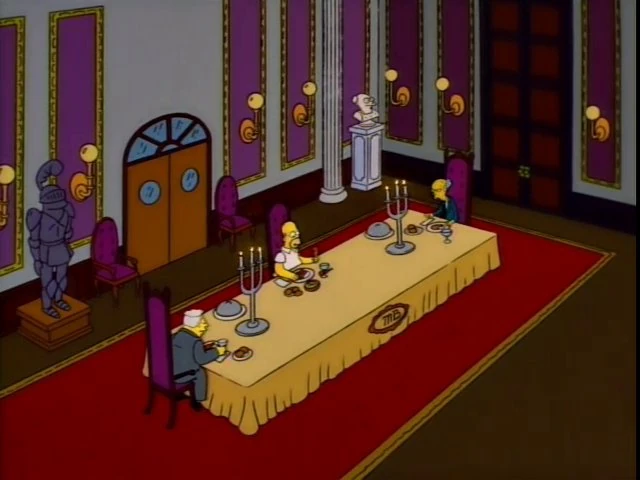When he's sitting at Mr. Burns' table, Larry does not have any feet.